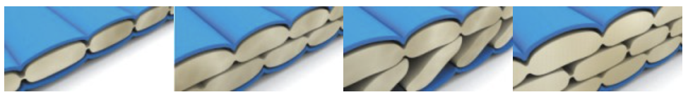 Воздух, находящийся в этих каналах, обеспечивает им превосходные теплоизоляционные свойства. Благодаря гибкому плетению и особой структуре волокон, они приобретают так называемый эффект LOFT. Это означает, что после распаковки они возвращаются к своему первоначальному объёму и заполняют пространство между камерами спального мешка.