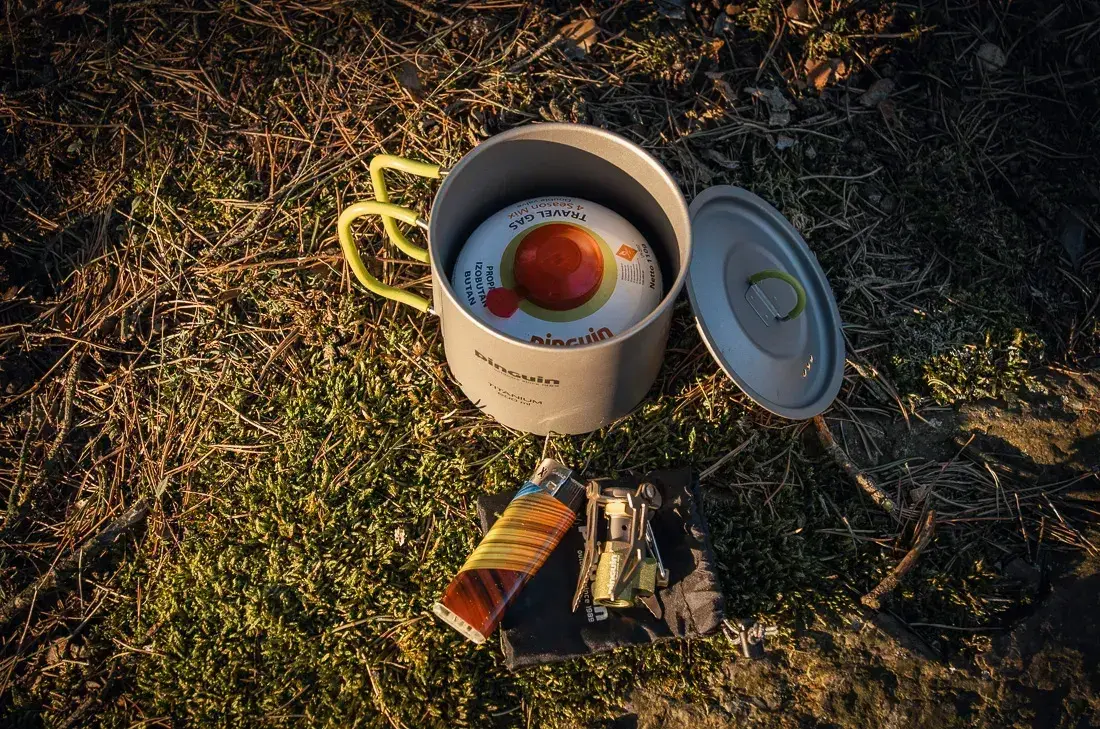 Титановая кружка Pinguin Mug Titan 1100ml изготовлена из высококачественного титана GR 1, который отличается исключительной легкостью, прочностью и коррозионной стойкостью, превосходя по своим свойствам сталь и алюминий. Кружка оснащена складными D-образными ручками с силиконовым покрытием для удобства и безопасности, также есть внутренние объемные метки для точного измерения жидкости. Поставляется с перфорированной крышкой, которая позволяет сливать воду. В кружку идеально помещается газовый баллон на 230 г с горелкой и губкой (приобретаются отдельно), так что вы сможете хранить все в одном месте.