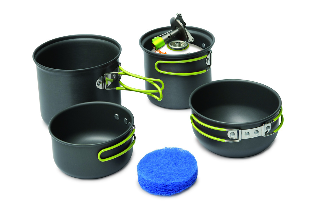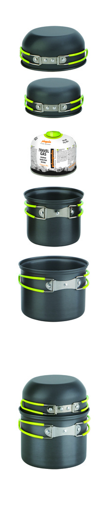 Набор посуды Pinguin Double — легкий и долговечный комплект из двух кастрюль и двух крышек-кастрюль из анодированного алюминия для приготовления еды на 1–2 человека. Анодированная поверхность повышает износостойкость, защищает от коррозии и облегчает уход, а складные стальные ручки с термостойким покрытием обеспечивают безопасное использование на горелке. Объем емкостей 1500/1000/750/500 мл позволяет готовить полноценный обед.