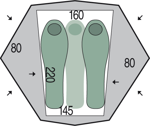 Pinguin Aero 3 DAC — это ультралегкая трехместная палатка с высокой ветроустойчивостью, идеально подходящая для треккинга и горных походов, где важен каждый грамм. Благодаря трапециевидной конструкции с двумя перекрестиями дуг DAC (Featherlite NSL), палатка обладает отличной самонесущей способностью и стабильностью даже при сильном ветре. Тент выполнен из сверхпрочного нейлона RipStop с тройной силиконизацией, что обеспечивает защиту от влаги (4000 мм) и ультрафиолета при минимальном весе. Два входа и два тамбура гарантируют удобный доступ для всех пользователей и достаточно места для хранения рюкзаков.