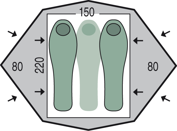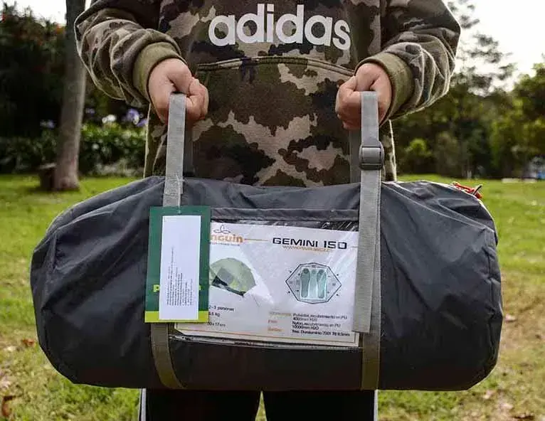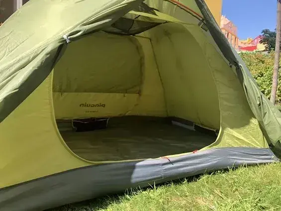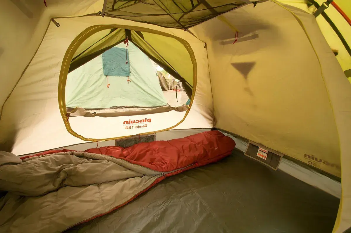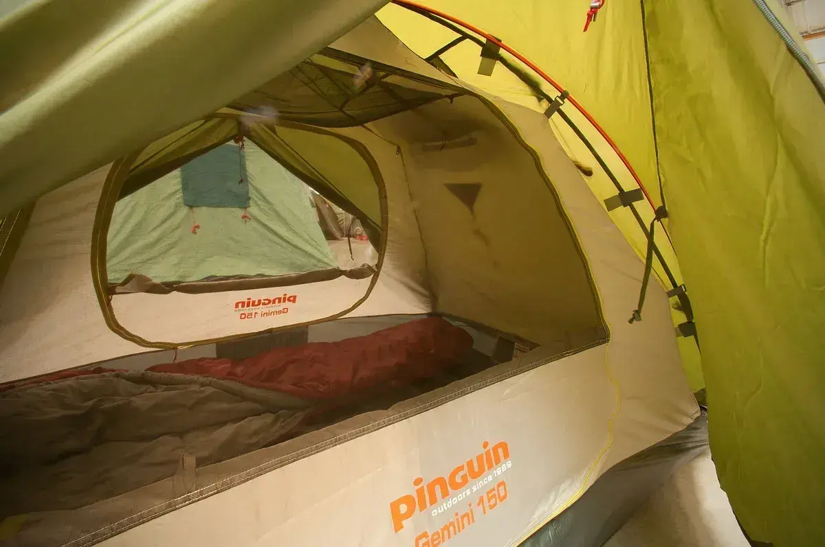 Pinguin Gemini 150 — это просторная треккинговая палатка с жесткой и ветроустойчивой конструкцией, идеально подходящая для 2–3 человек. Модель отличается наличием двух симметричных входов, каждый из которых имеет собственный тамбур для хранения снаряжения и улучшения вентиляции. Жесткость каркаса обеспечивается тремя дугами из дюралюминия (Dural 7001 T6): две основные дуги перекрещиваются, создавая купол, а третья поперечная дуга увеличивает объем тамбуров. Внешний тент из полиэстера с PU-покрытием выдерживает 4000 мм осадков и устойчив к ультрафиолету, а дно из нейлона с показателем 10000 мм гарантирует сухость даже в сильный ливень.