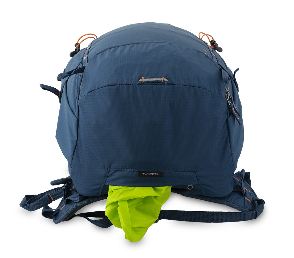 - Интегрированный дождевик в специальном отделении в нижней части рюкзака