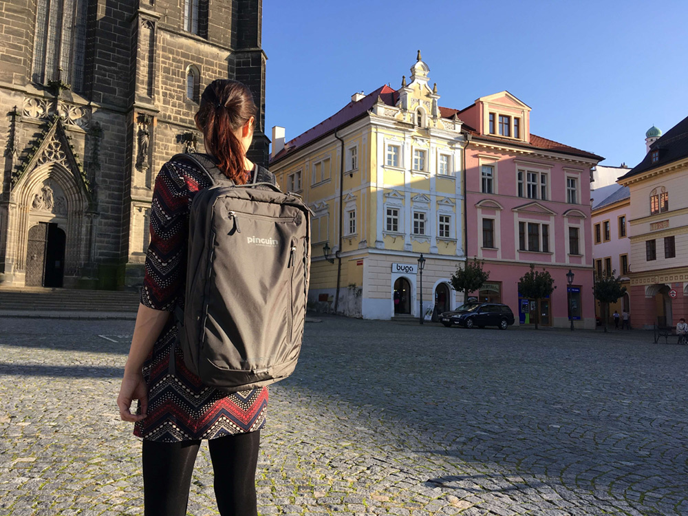 Спинка рюкзака оборудована вентилируемой системой E3D, которая максимально приближает центр тяжести к спине и обеспечивает комфортную вентиляцию даже в жаркую погоду. Рюкзак оснащен регулируемыми плечевыми лямками с усиленным мягким слоем и возможностью трансформировать модель в сумку через плечо или полностью прятать лямки. Предусмотрены два внешних кармана на молниях, один из которых снабжен карабином для ключей, а для дополнительной безопасности в тёмное время суток имеется светоотражающая петля.