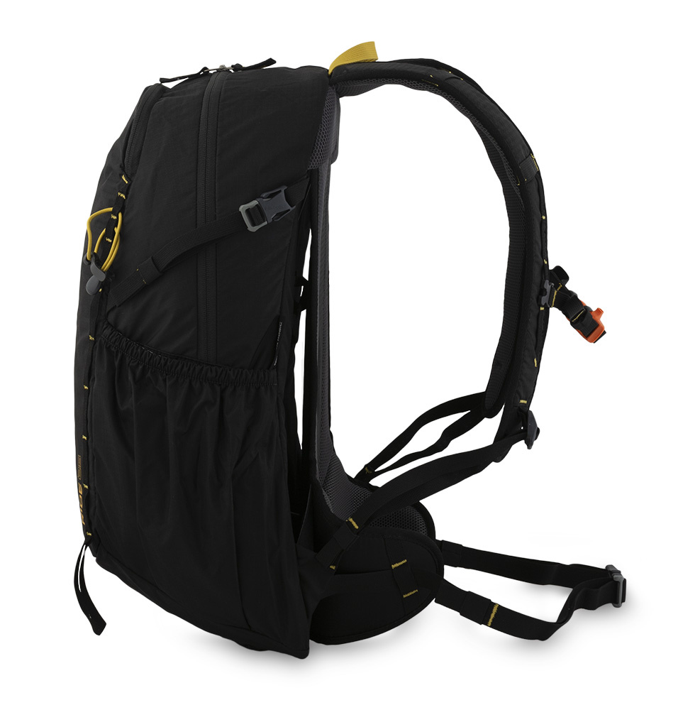 Эргономика: Перфорированные плечевые лямки, поясной ремень с крыльями для стабилизации и регулируемая грудная стяжка со спасательным свистком.