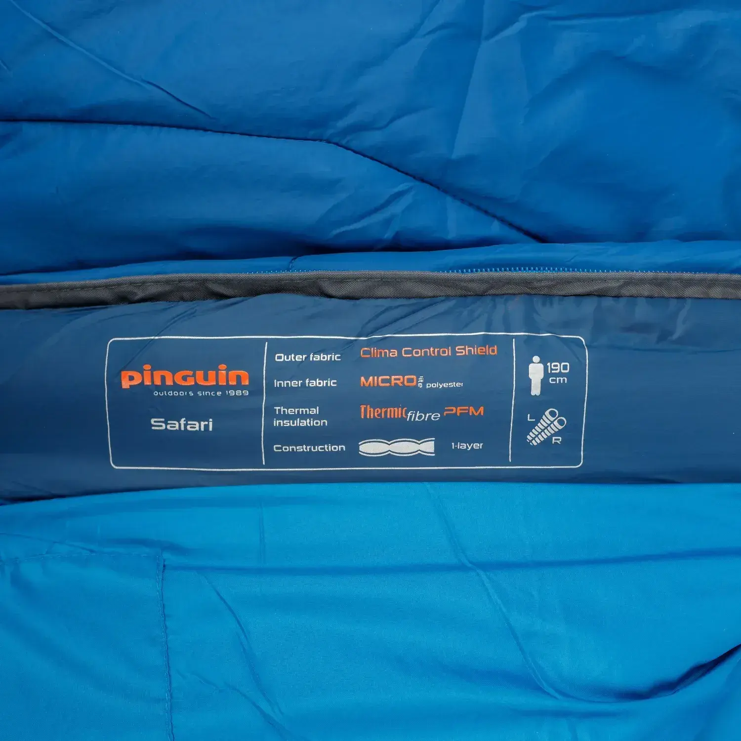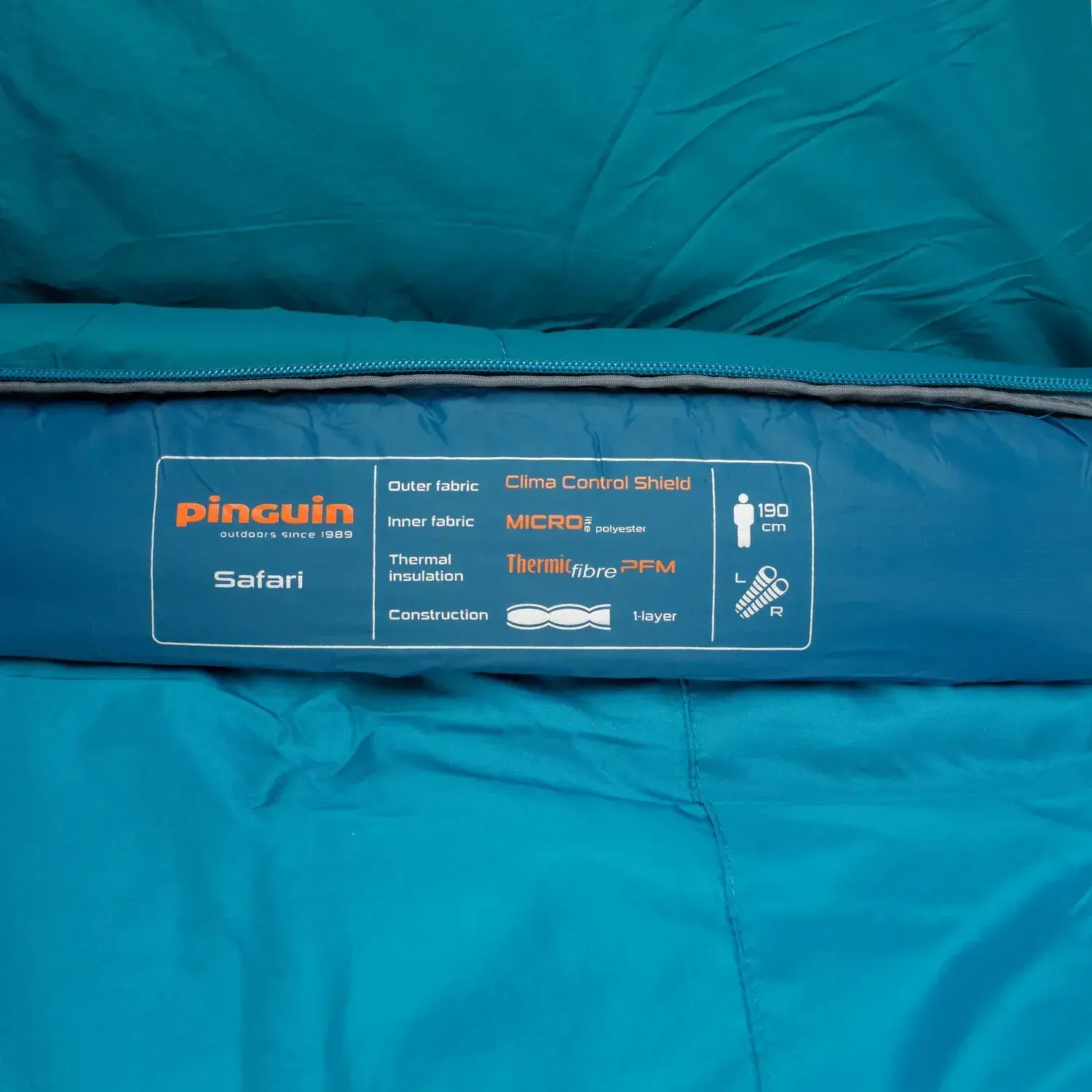 Pinguin Safari PFM — это трёхсезонный спальный мешок-одеяло с капюшоном, специально созданный для теплого времени года, автокемпинга, рыбалки и непродолжительных походов. Благодаря просторной конструкции и комфорту при температурах около +4°C, Safari отлично справляется с задачей демисезонного снаряжения, также позволяя использовать мешок как полноценное одеяло для отдыха на природе.