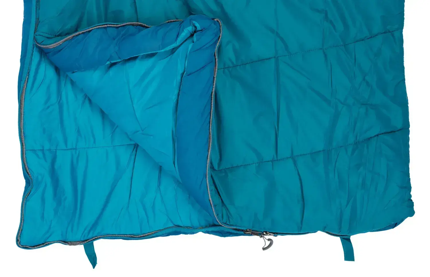 Модель имеет форму одеяла без капюшона, оснащена двусторонней молнией SBS с внутренней ветрозащитой, которая предотвращает продувание через замок. Размеры и конструкция позволяют соединять несколько мешков вместе. Компактно складывается в компрессионный мешок (объём 6.8 литров) при весе 1,35 кг. Это практичный выбор для летних путешествий, походов, автокемпинга и использования дома в прохладное время года.