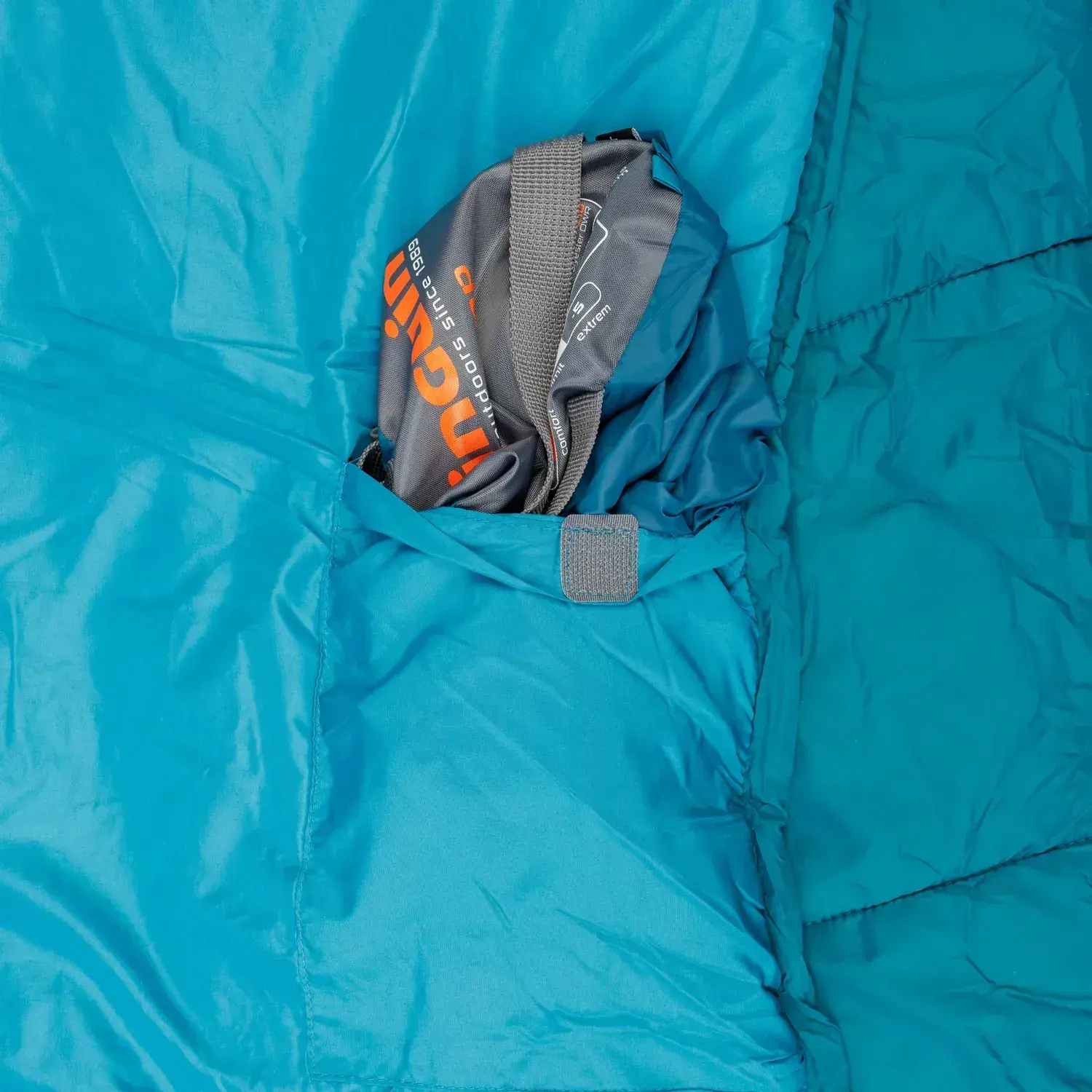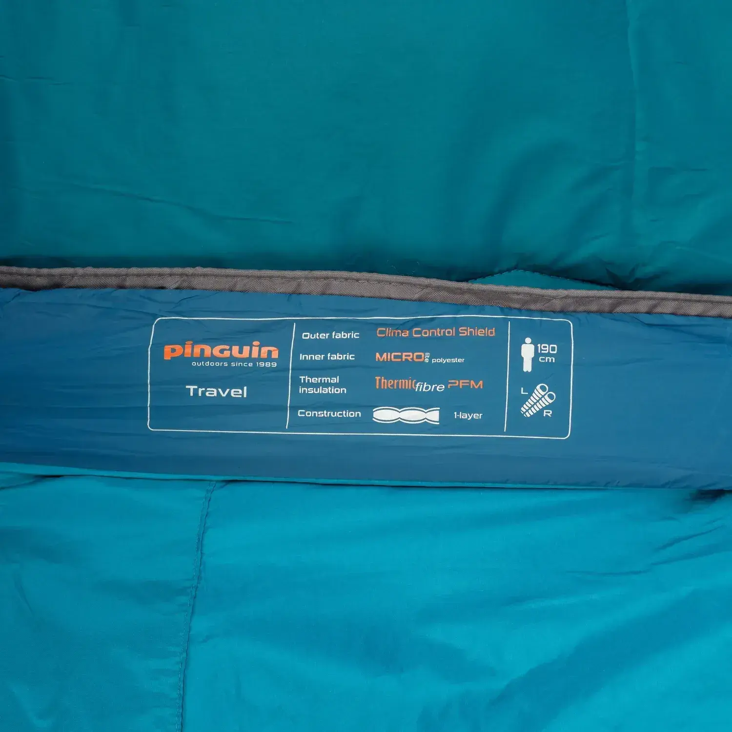 Спальный мешок Pinguin Travel PFM — универсальный летний спальный мешок в форме одеяла, предназначенный для использования в тёплую погоду и в качестве дополнительного утепления в доме или на даче. Его легко брать с собой в авто на случай непредвиденных ситуаций. Наполнен одним слоем синтетического утеплителя ThermicFibre PFM плотностью 100 г/м², который быстро сохнет, не впитывает влагу и хорошо сохраняет тепло. Внешняя ткань выполнена из лёгкого полиэстера с водоотталкивающей пропиткой Clima Control Shield, обеспечивающей защиту от ветра, влаги и комфортный микроклимат внутри мешка.